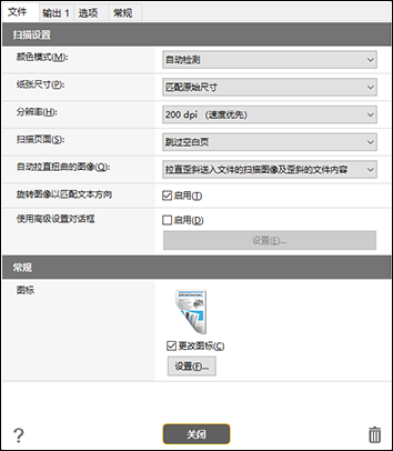 | 关闭 | [扫描设置]的设置 | 扫描仪驱动程序高级设置对话框的设置 |