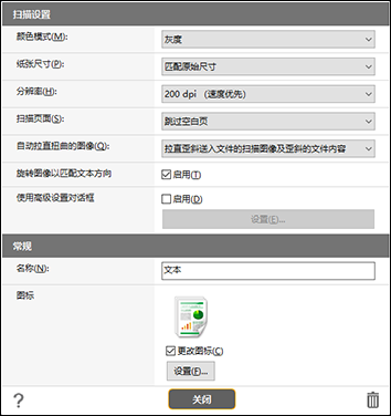 | 关闭 | [扫描设置]的设置 | 扫描仪驱动程序高级设置对话框的设置 |
