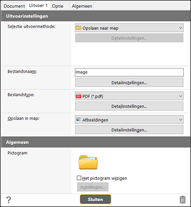 Stel de uitvoer na het scannen, de bestandsnaam, enz. in.