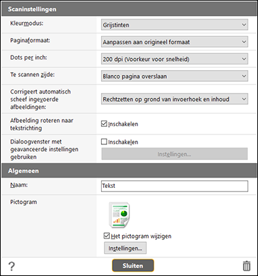 Als u de grootte of de kleuraanpassingen van het document wilt aangeven, kunt u in het [Selecteer document] venster de gewenste scanvoorwaarden instellen.