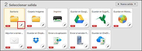 Se visualizará el cuadro de diálogo de edición del panel Seleccionar salida.