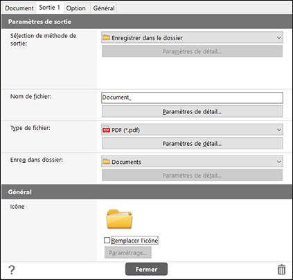 Paramétrez la sortie après la numérisation, le nom de fichier etc.