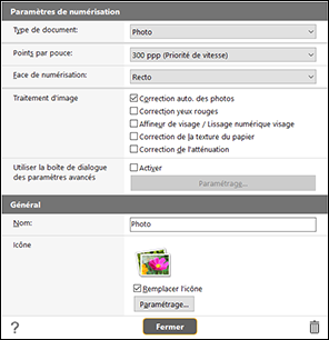 Les éléments de définition dans [Paramètres de numérisation] conviennent pour les photos.